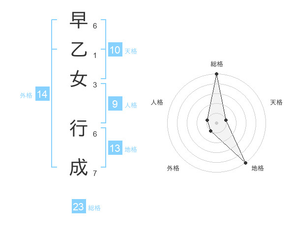 早乙女 行成さんの総格は23画の5点!