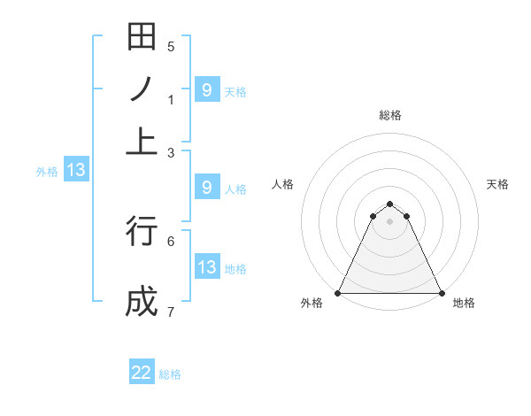 田ノ上 行成さんを姓名の画数から五運を鑑定