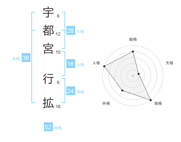 宇都宮 行拡さんを姓名の画数から五運を鑑定