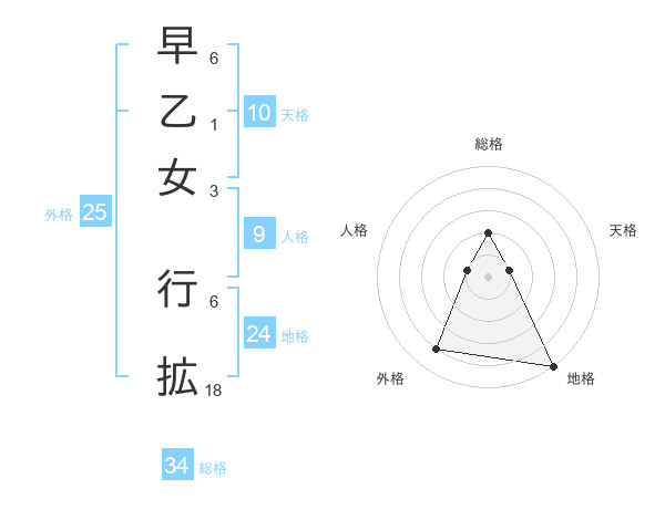 早乙女 行拡さんの総格は34画の2点!