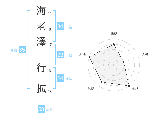 海老澤 行拡さんの総格は58画の4点