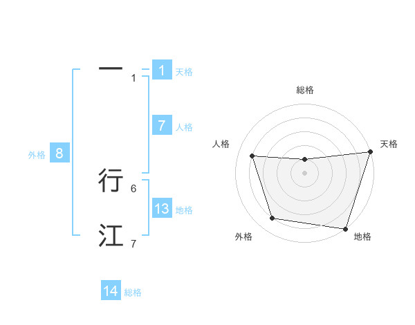 一 行江さんの総格は14画の1点!