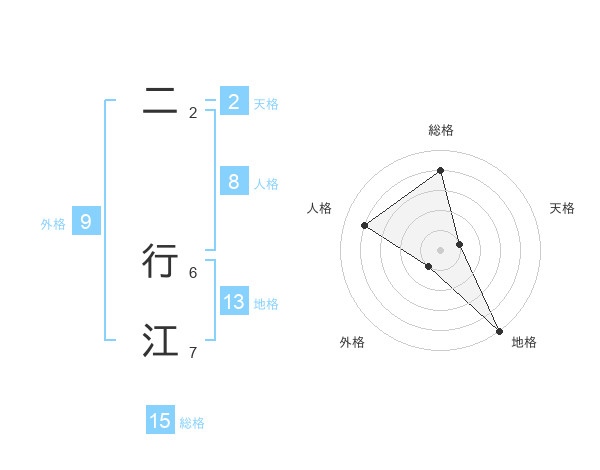 二 行江さんの総格は15画の4点!