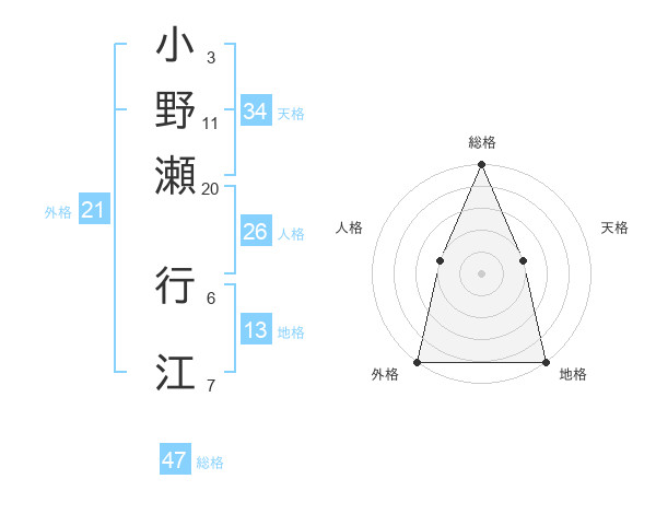 小野瀬 行江さんの総格は47画の5点