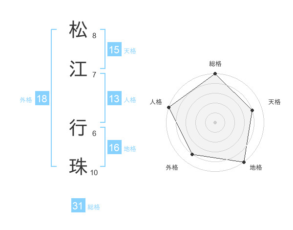 松江 行珠さんの総格は31画の5点!