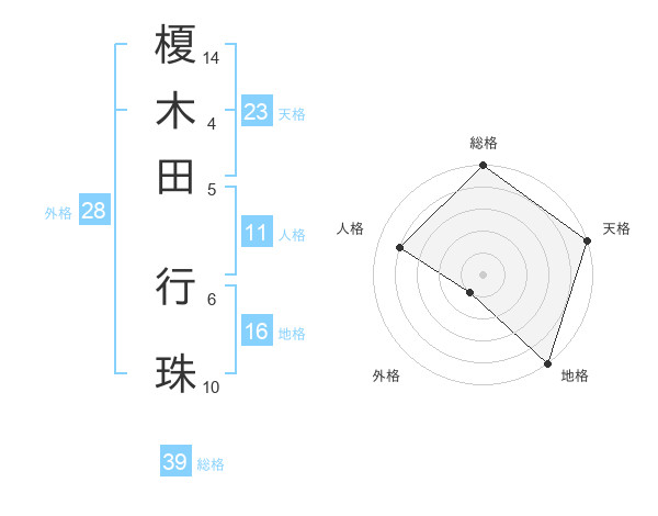 榎木田 行珠さんを姓名の画数から五運を鑑定