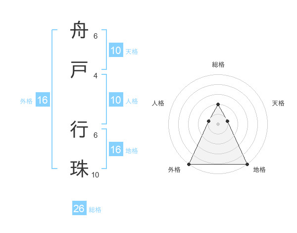 舟戸 行珠さんを姓名の画数から五運を鑑定