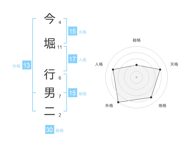 今堀 行男二さんを姓名の画数から五運を鑑定