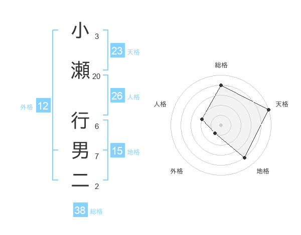 小瀬 行男二さんを姓名の画数から五運を鑑定