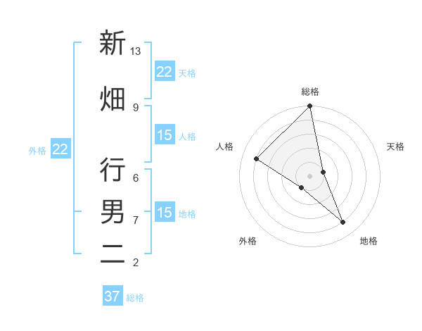 新畑 行男二さんを姓名の画数から五運を鑑定