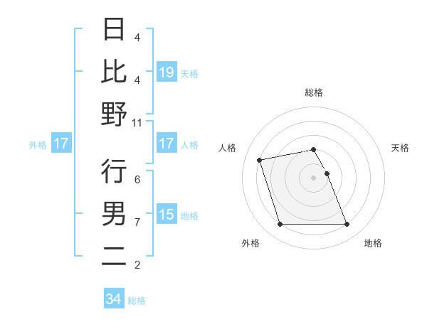 日比野 行男二さんを姓名の画数から五運を鑑定