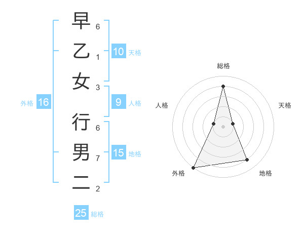 早乙女 行男二さんを姓名の画数から五運を鑑定