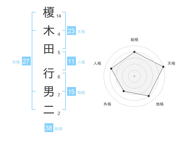 榎木田 行男二さんを姓名の画数から五運を鑑定