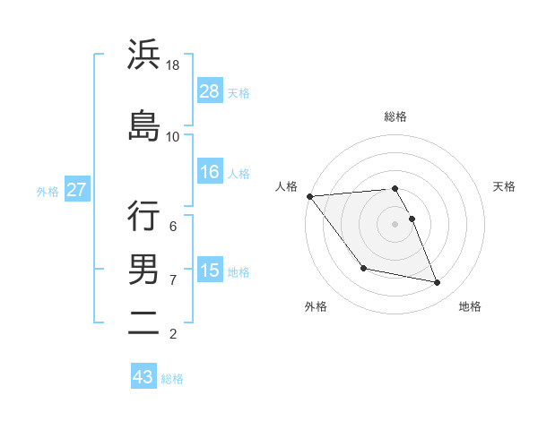 浜島 行男二さんを姓名の画数から五運を鑑定