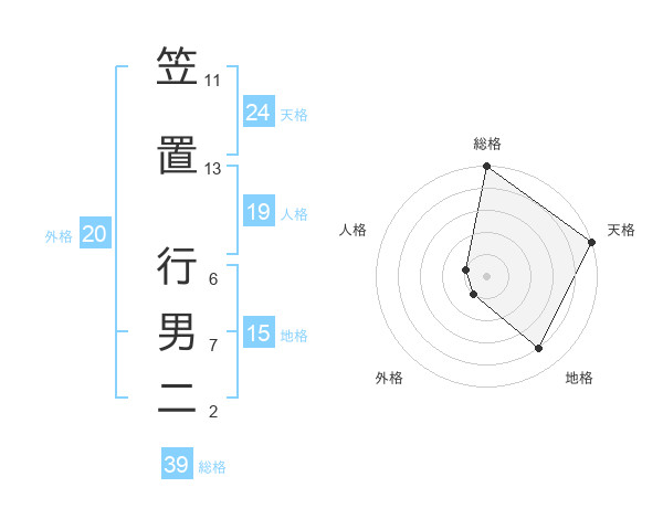 笠置 行男二さんを姓名の画数から五運を鑑定