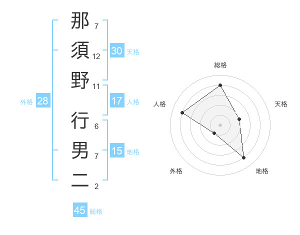 那須野 行男二さんを姓名の画数から五運を鑑定