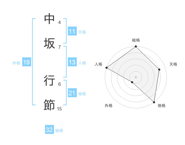 中坂 行節さんの総格は32画の5点!