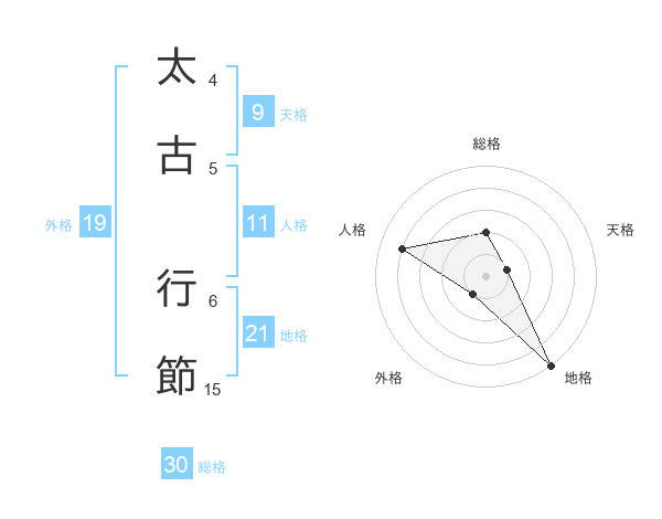 太古 行節さんの総格は30画の2点!