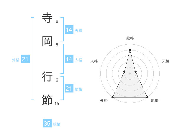 寺岡 行節さんの外格は21画の5点!