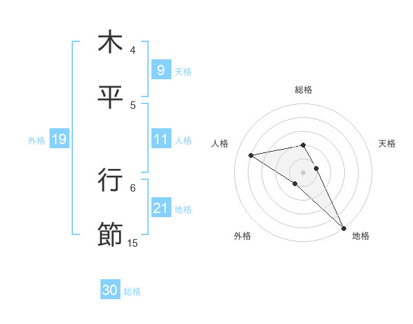 木平 行節さんの総格は30画の2点!
