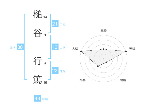 槌谷 行篤さんを姓名の画数から五運を鑑定