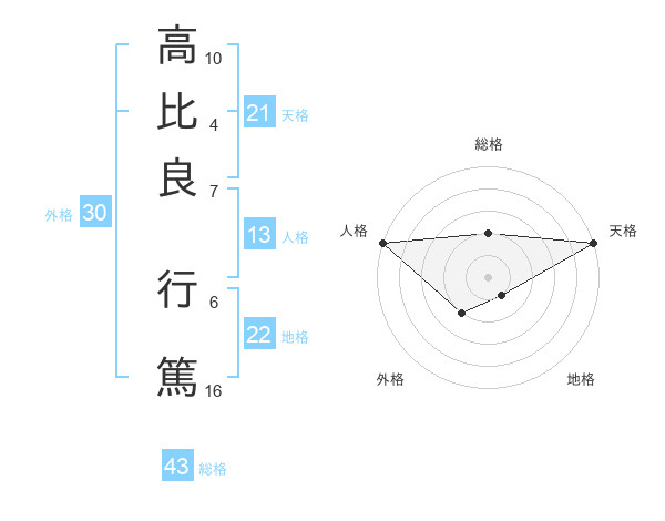 高比良 行篤さんを姓名の画数から五運を鑑定