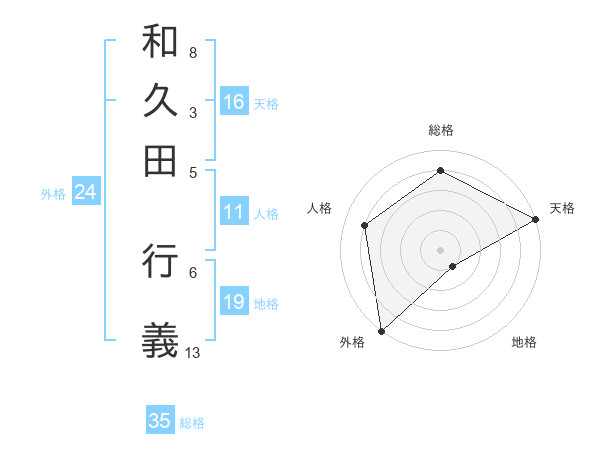 和久田 行義さんの天格は16画の5点!