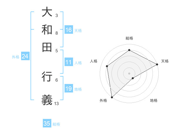 大和田 行義さんの総格は35画の4点!