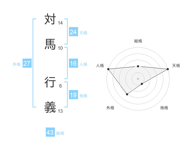 対馬 行義さんの天格は24画の5点!
