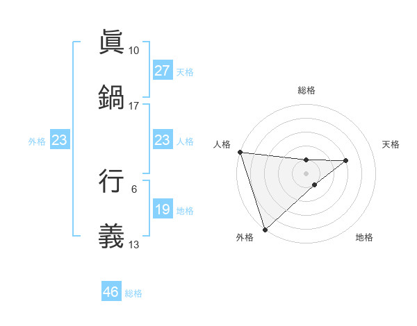 眞鍋 行義さんを姓名の画数から五運を鑑定