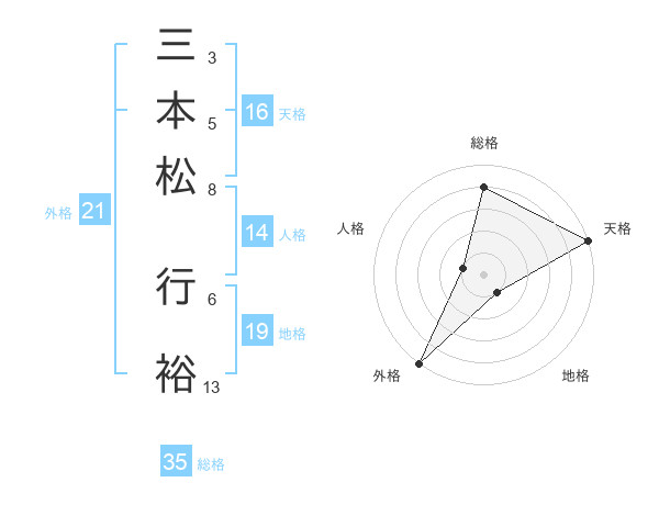 三本松 行裕さんを姓名の画数から五運を鑑定