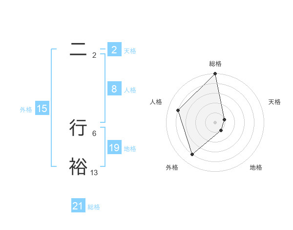 二 行裕さんの総格は21画の5点!