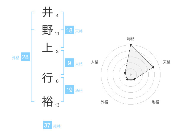 井野上 行裕さんを姓名の画数から五運を鑑定