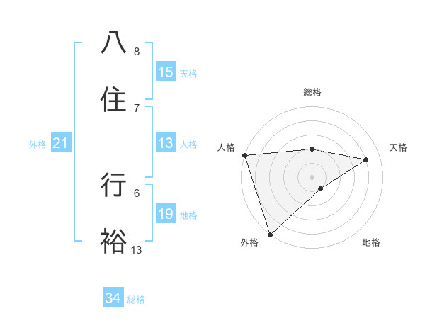 八住 行裕さんの外格は21画の5点!
