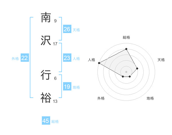 南沢 行裕さんの総格は45画の4点!