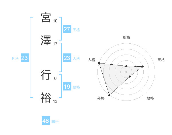 宮澤 行裕さんを姓名の画数から五運を鑑定