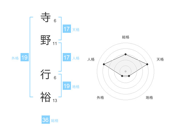 寺野 行裕さんの外格は19画の1点!