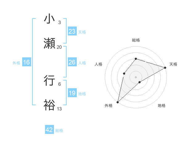 小瀬 行裕さんを姓名の画数から五運を鑑定