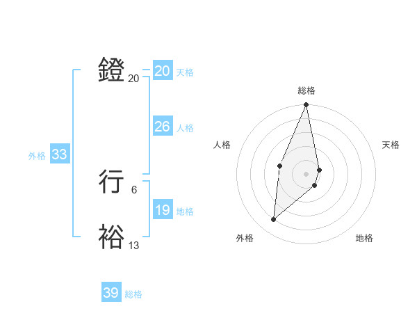 鐙 行裕さんを姓名の画数から五運を鑑定