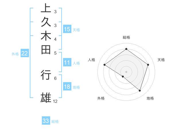 上久木田 行雄さんを姓名の画数から五運を鑑定