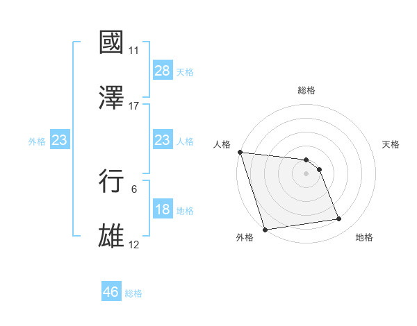 國澤 行雄さんを姓名の画数から五運を鑑定