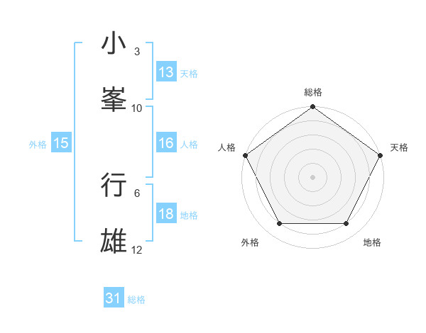 小峯 行雄さんを姓名の画数から五運を鑑定
