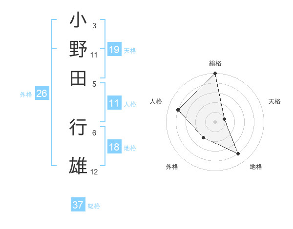 小野田 行雄さんを姓名の画数から五運を鑑定