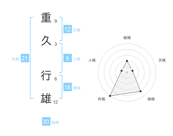 重久 行雄さんの総格は30画の2点!