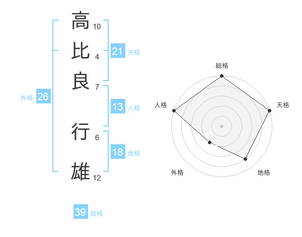 高比良 行雄さんの天格は21画の5点!