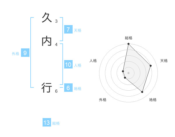 久内 行さんの総格は13画の5点!