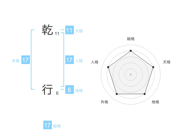 乾 行さんの総格は17画の4点!