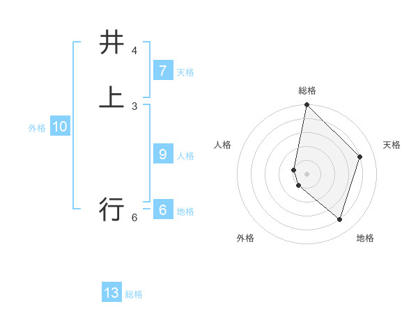 井上 行さんの総格は13画の5点!