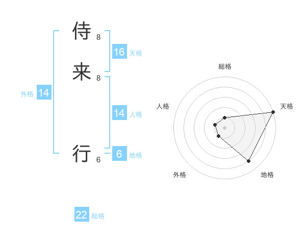 侍来 行さんの総格は22画の1点!