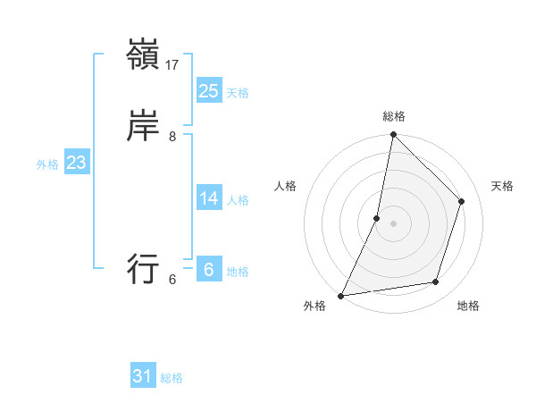 嶺岸 行さんの総格は31画の5点!